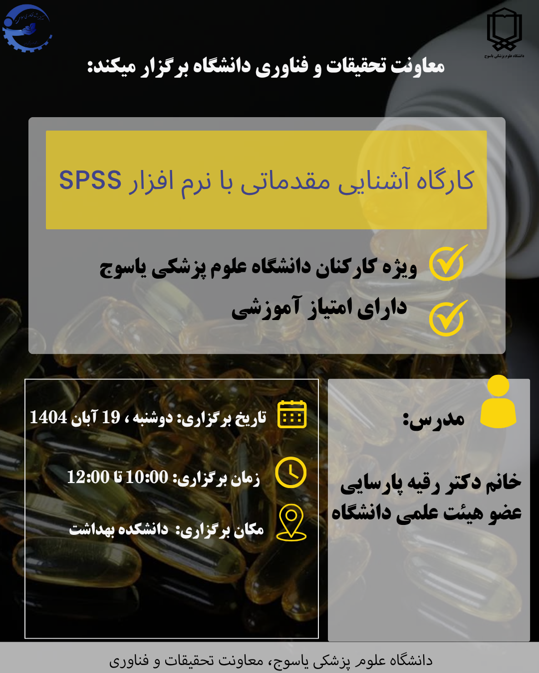 5  نرم افزار spss  پیشرفته دکتر رقیه پارسایی کارکنان و اعضای هیئت 1404/03/10 12-14 لینک لینک لینک